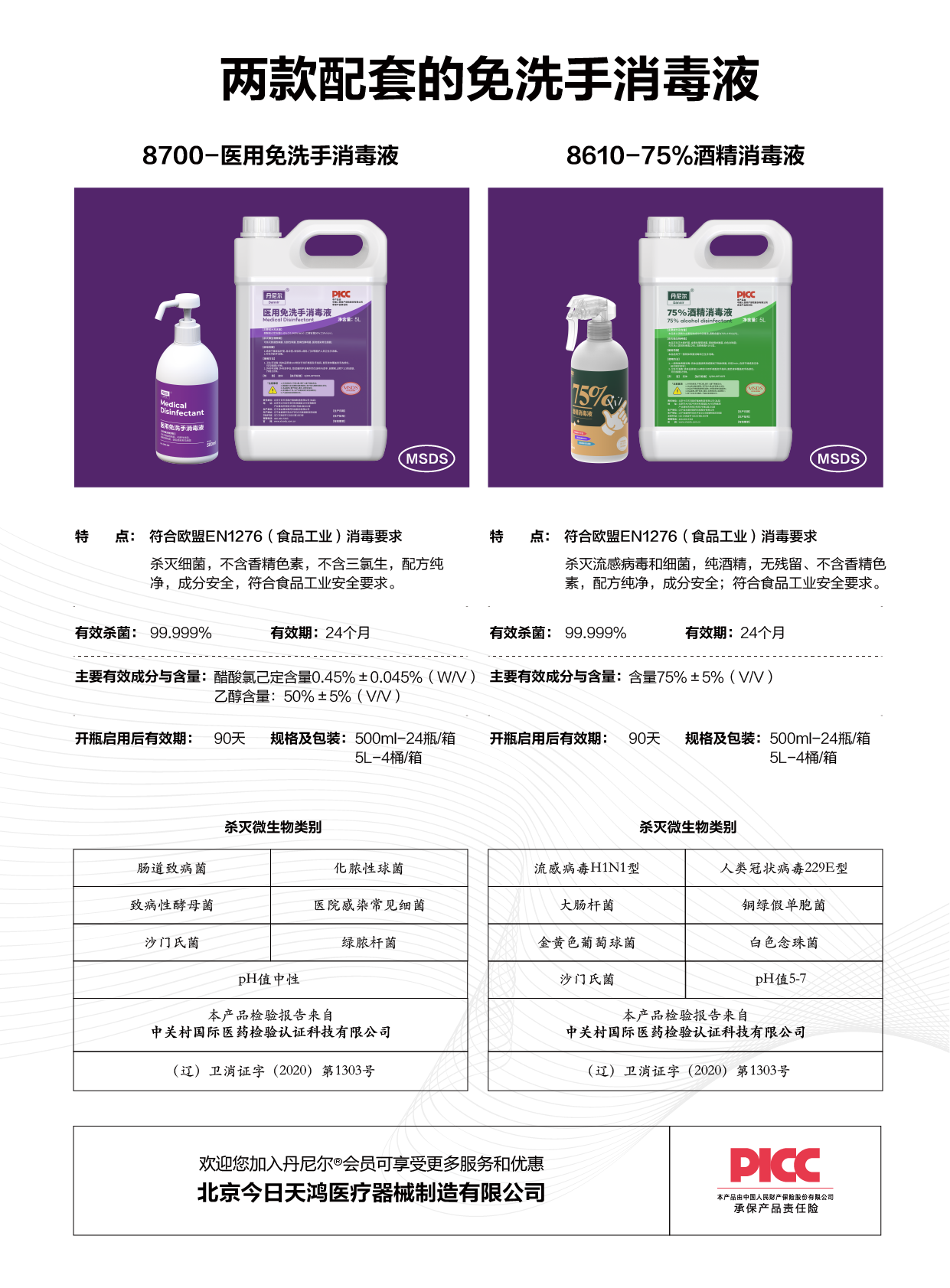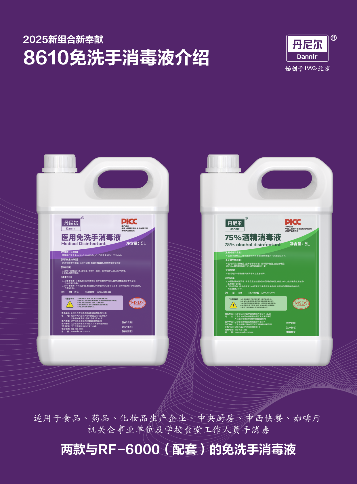 适用于食品、药品、化妆品生产企业、中央厨房、中西快餐、咖啡厅机关企事业单位及学校食堂工作人员手消毒。两款与RF-6000(配套)的免洗手消毒液